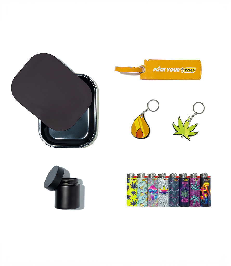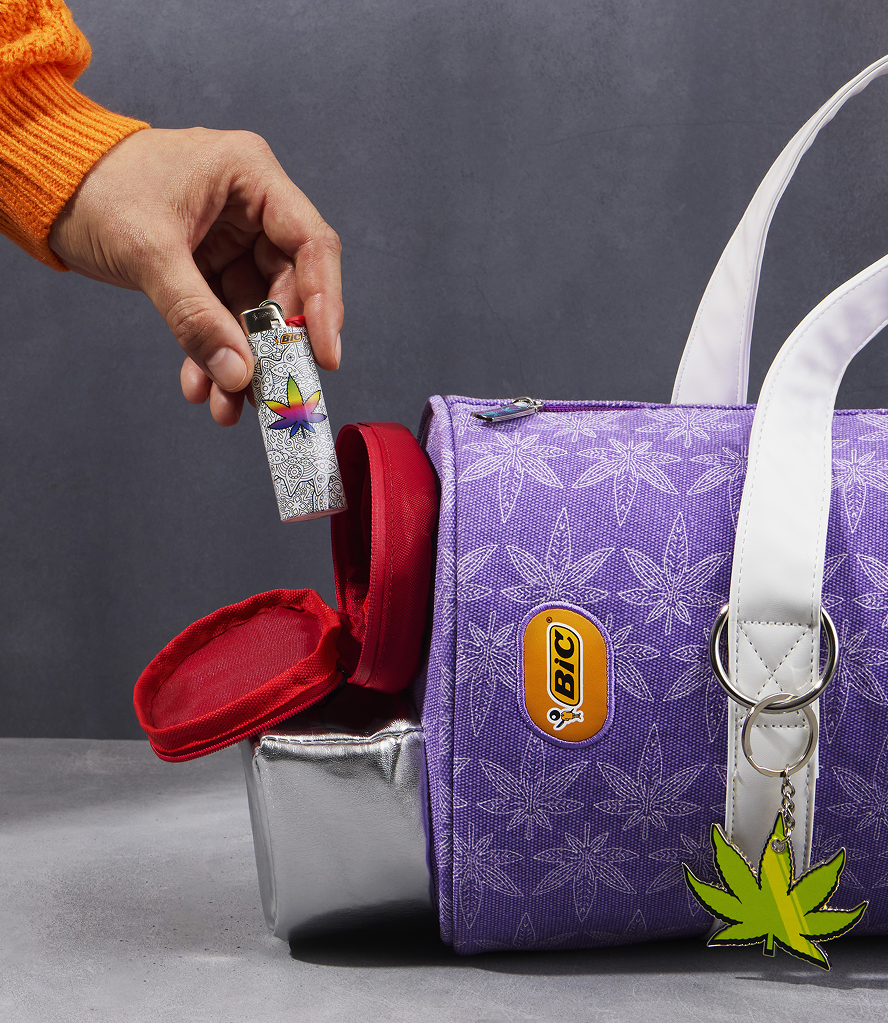 The BIC Flickaway Weekender Bag includes travel accessories only. Cannabis products are not included.